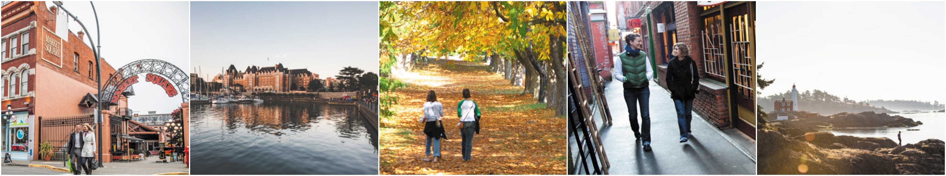 Photo Credits: Victoria - Destination BC | Inner Harbour - Tourism Victoria | Johnson Street - Tourism Victoria | Fall Walk in Victoria - Tourism Victoria | Victoria - Destination BC | Fan Tan Alley - Tourism Victoria